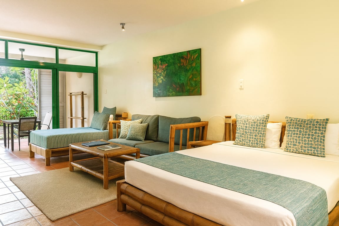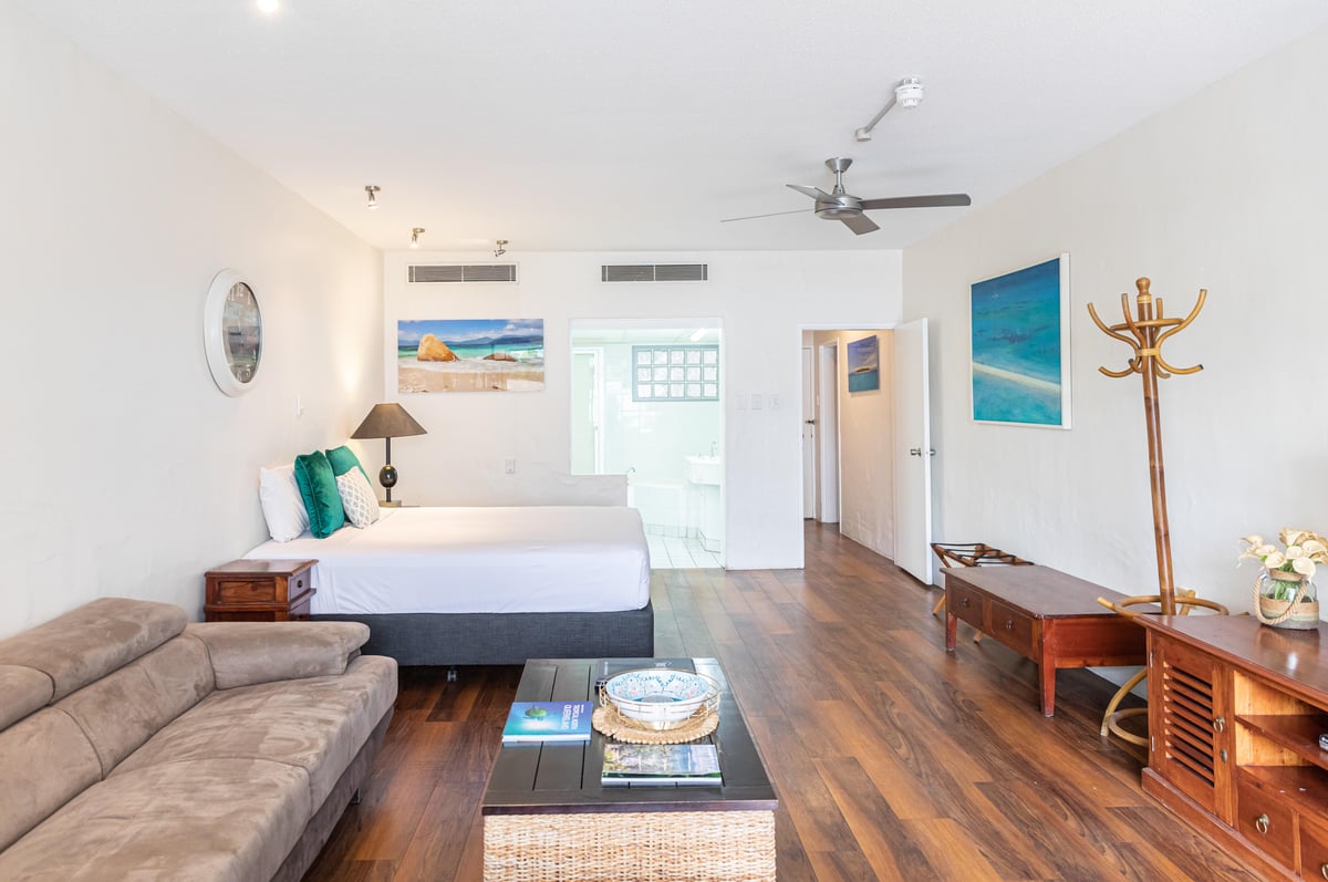 Stylishly furnished apartment, with an alfreasco kitchenette (and the bonus of a dishwasher), spacious seating on the outdoor balcony over looking the tranquail water garden. This apartment is designed for tropical living and is tiled throughout and fully air-conditioned. This apartment accommodates up to 4 guests and has been decorated to a very high standard. The apartment offers 2 separate sleeping areas each with ensuite bathrooms. This comprises of a king bed in the living area and separate bedroom available as either 1 x king or 2 x king singles, and has its own ensuite bathroom, so is perfect for familes or friends travelling together.